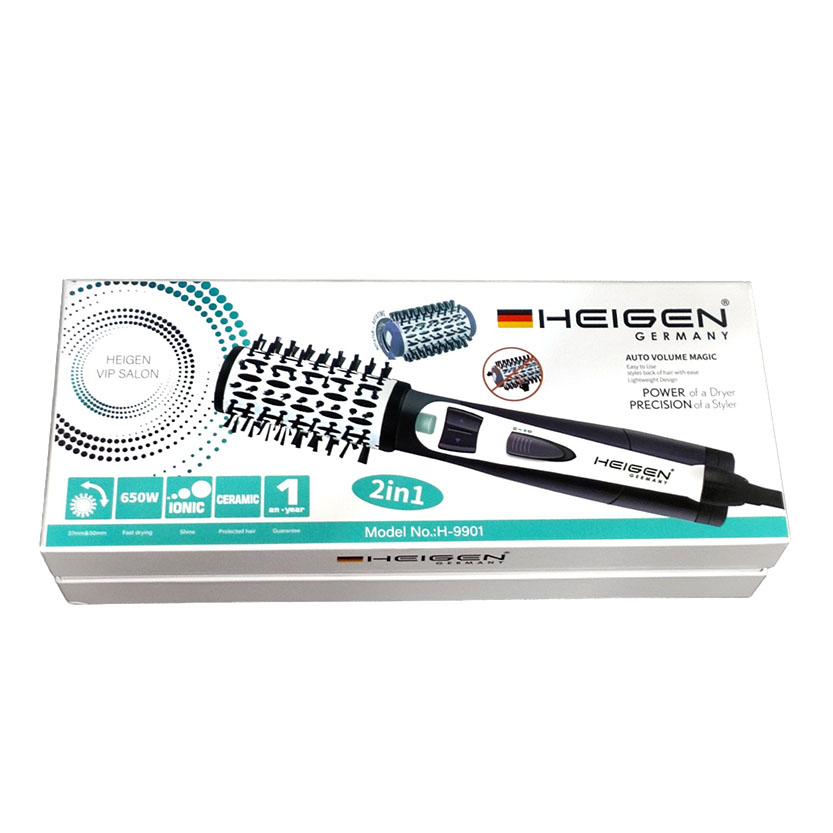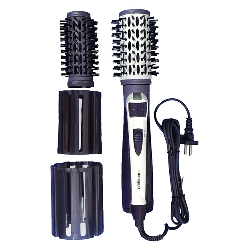 • سشوار چرخشی هیگن برس دار چرخان با دوسر قابل تعویض ، دارای دو برس متوسط و بزرگ است تا با کمک آن بتوان موهای بلند و کوتاه را بهتر حالت داد.